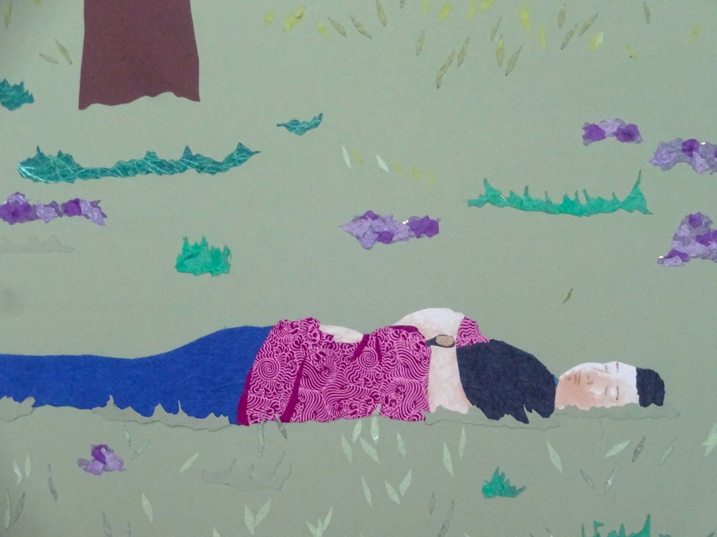 Geese and Pond/gouache paint and cut-out paper/24 x 30″